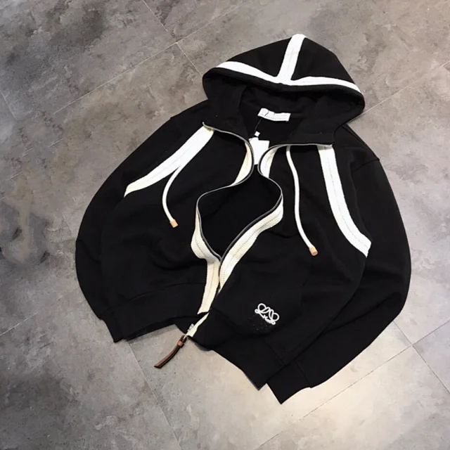 Heavy-duty webbing zipper drawstring hooded sweatshirt jacket