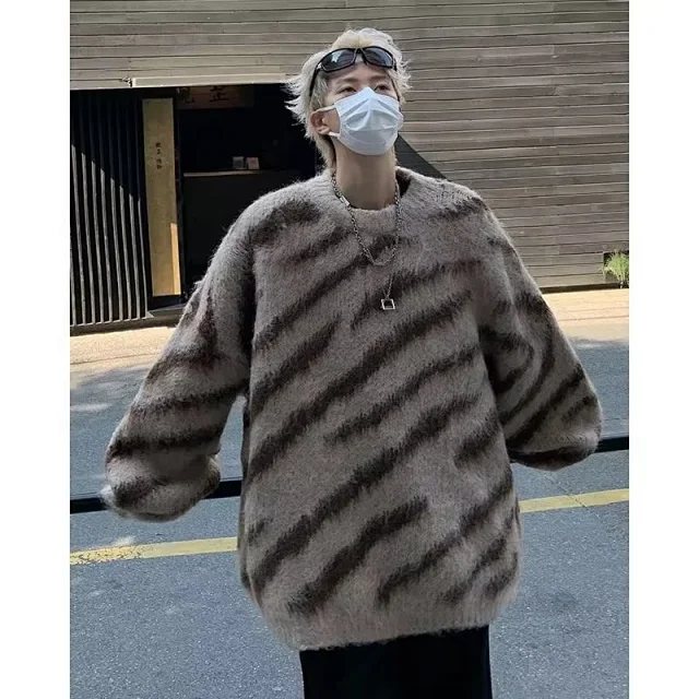 Thick Fleece Knit Vintage Lazy Style Jacket Zebra Print Sweater1