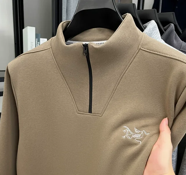 Half-zip pullover hoodie long-sleeve T-shirt with stand collar jacket1