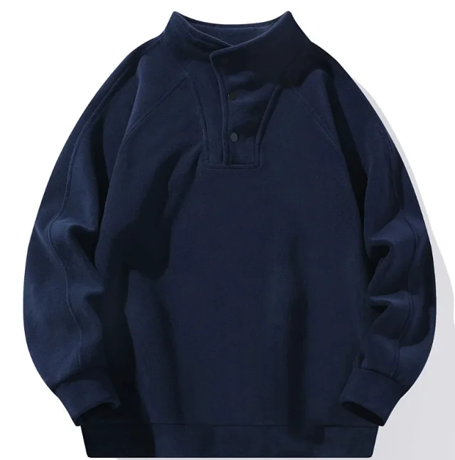 Casual loose-fitting stylish versatile stand-collar pullover sweatshirt with button closure2