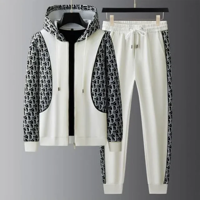 Dior Patchwork hoodie with stylish long pants casual sportswear set
