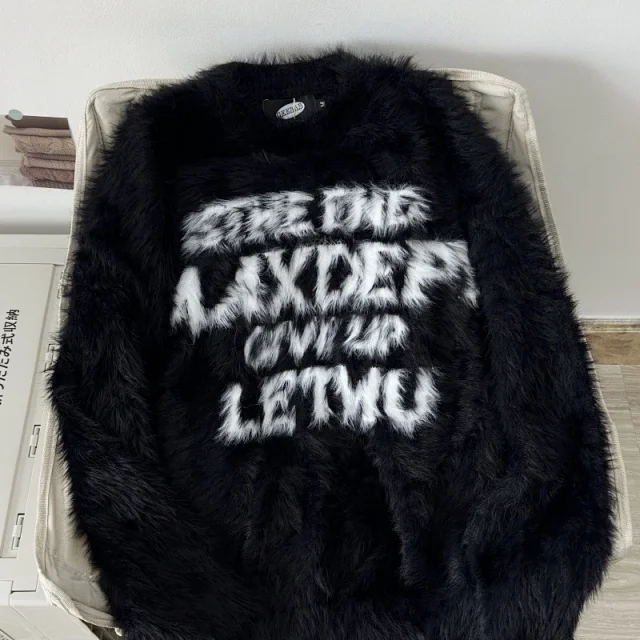 Retro Couple Loose Letter Lazy Style Crew Neck Knit Sweater