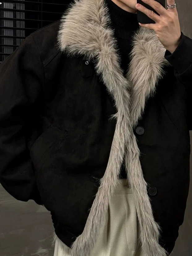 Vintage oversized plush high-collar padded cotton jacket