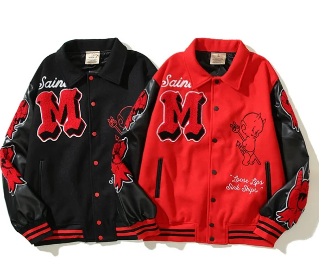 S.M Fashion Devil Pattern Baseball Jacket