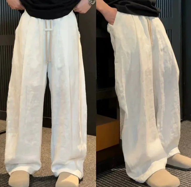 Loose, drop-crotch wide-leg pants, straight-leg, casual and versatile