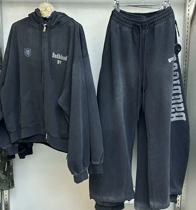 Loose retro washed hoodie, T-shirt, and pants