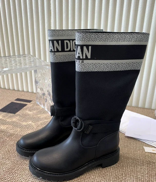 Trendy D-letter thick -soled knee-high boots