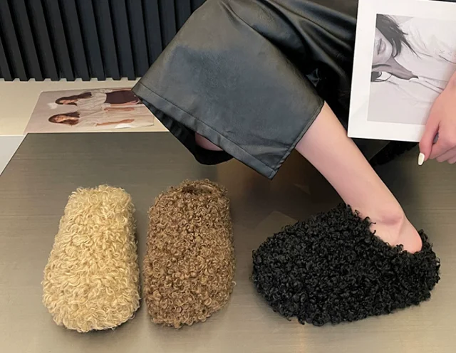 Soft velvet closed-toe half slippers