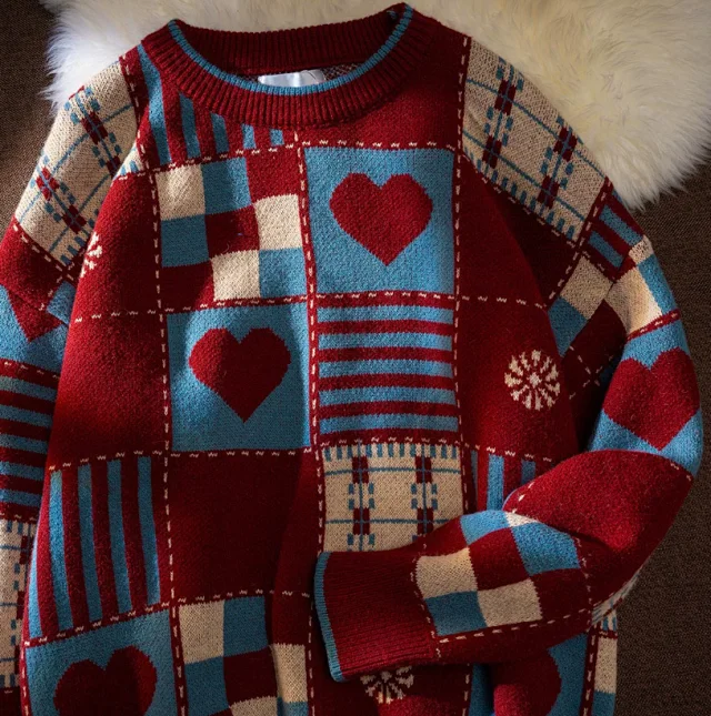 Retro Gradient Color Round Neck Loose Fit Couples Knit Sweater2