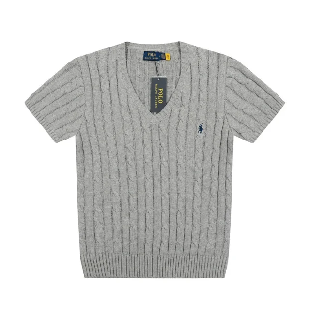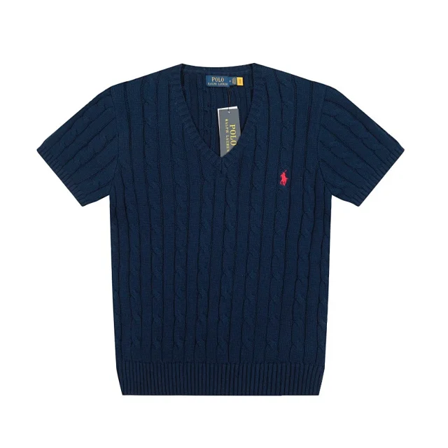 RL Classic Versatile V-Neck Cable Knit Short-Sleeve Sweater1
