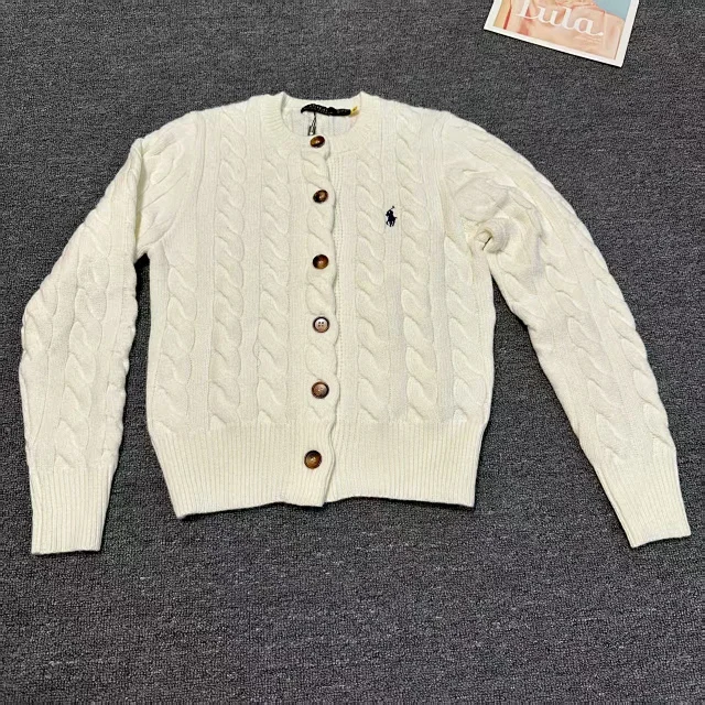 RL Twist Plush Crew Neck Simple Knit Cardigan Sweater