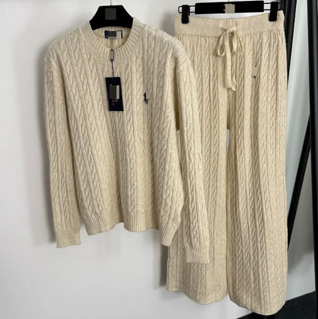 RL Twisted Striped Knit Sweater with Drawstring High-Waist Casual Pants Set