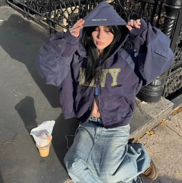 Heavy-duty webbing zipper drawstring hooded sweatshirt jacket