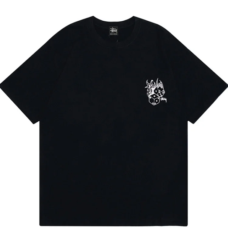 STU trendy brand cotton dice pattern T-shirt