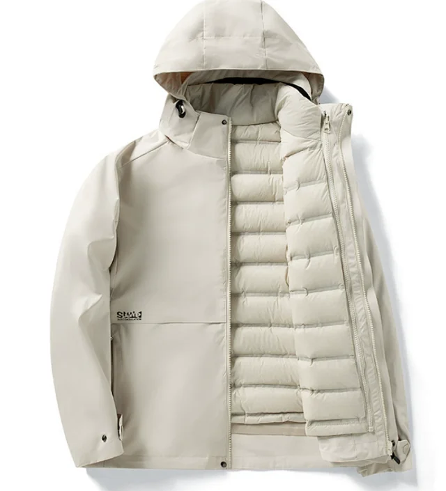 Down-filled ski jacket 3-in-1 detachable windproof and waterproof mountaineering coat