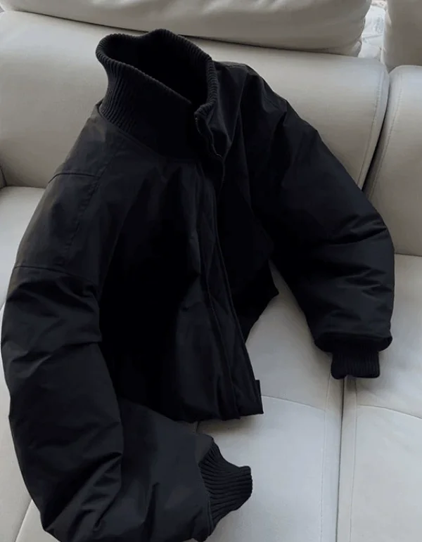 Loose-fitting workwear-style warm and versatile color-block hooded down jacket