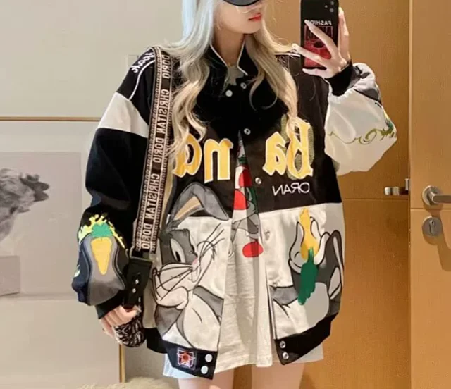 S.M Baseball Jacket with Patchwork Letter Pattern
